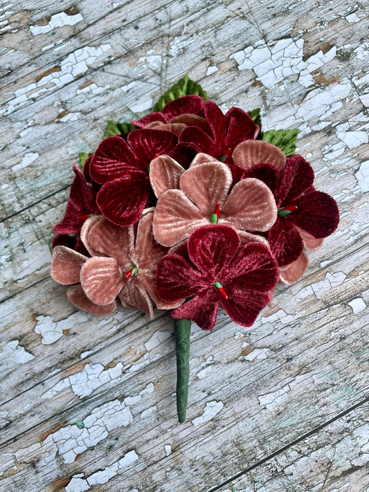 40's Style Vintage Velvet Flower Brooch Wine + Dusky Pink