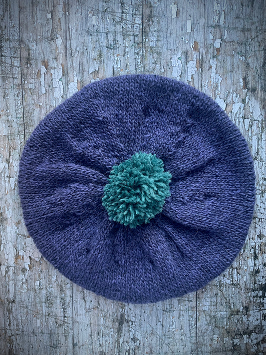 Hand Knitted Wool Beret Dark Navy Blue Large