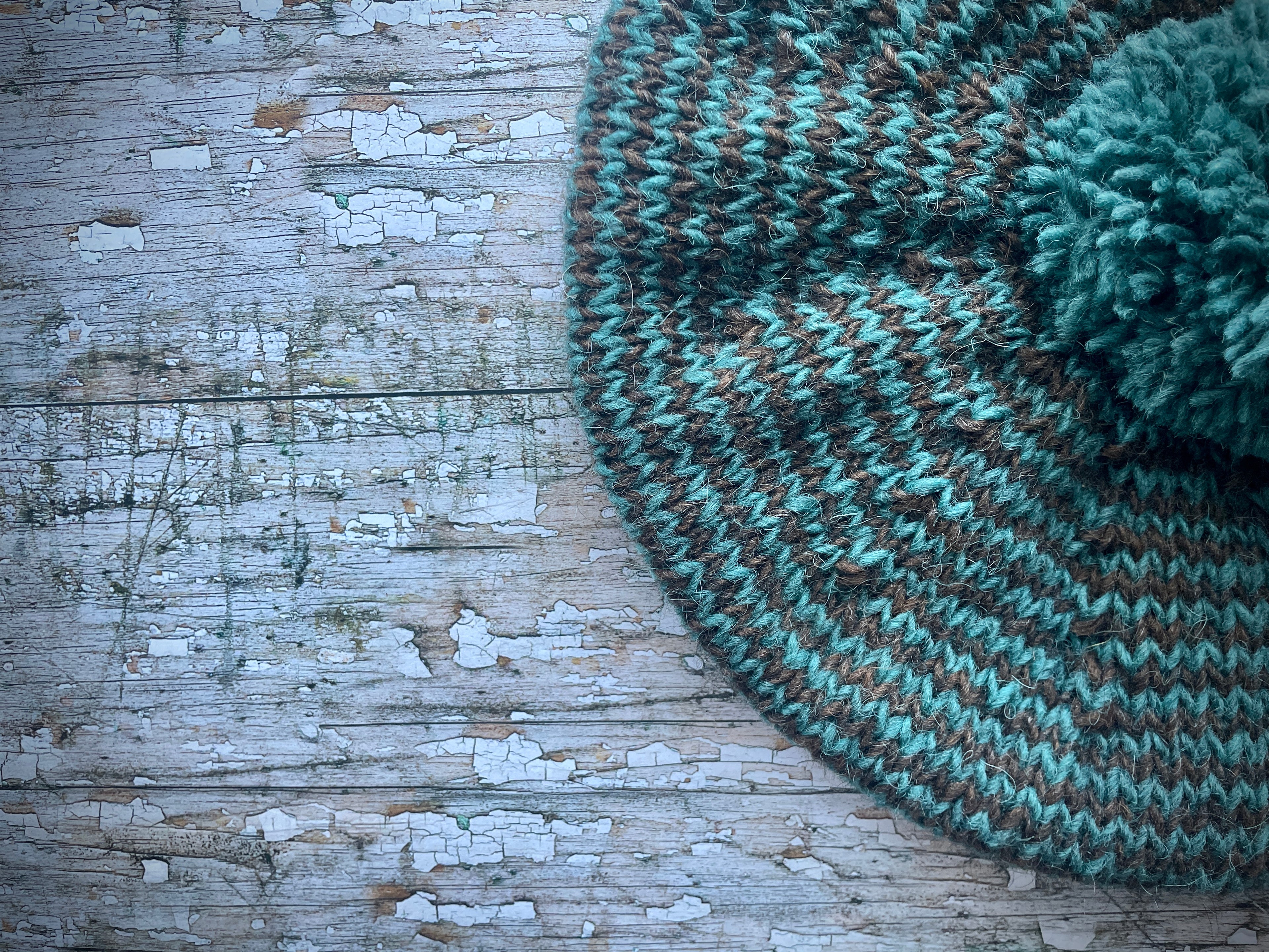 Beret Of Hand Spun Hand Knitted Plant Dyed Flecked Ochre Wool