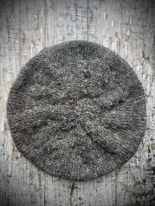 Hand Knitted Wool Beret Grey Heather Large