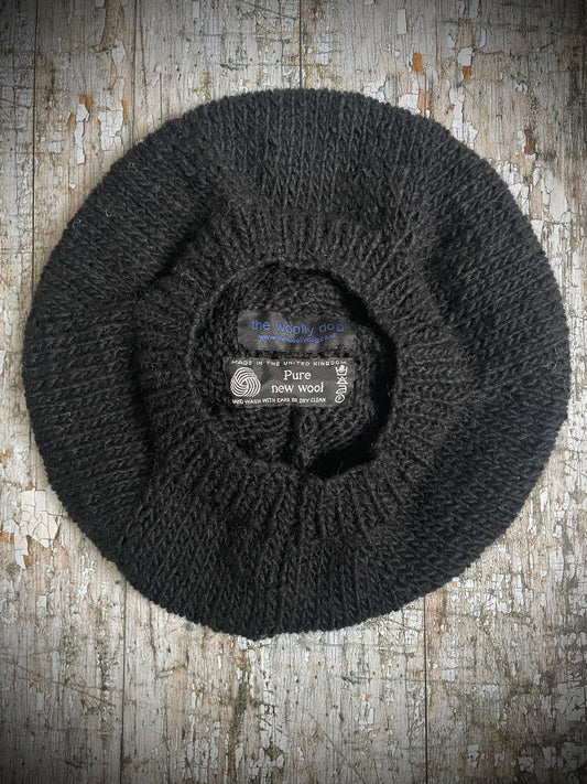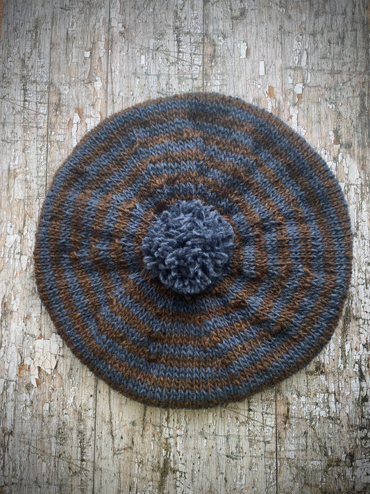 Breton Stripes Hand Knitted Wool Beret Denim Blue + Dark Chocolate