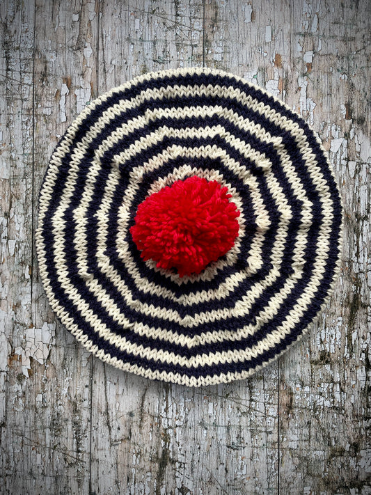 Children's Hand Knitted Breton Stripe Wool Beret, Navy, Cream And Red 6 - 24 Months