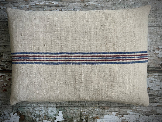 Vintage Hemp Grain Sack Cushion Horizontal Stripes