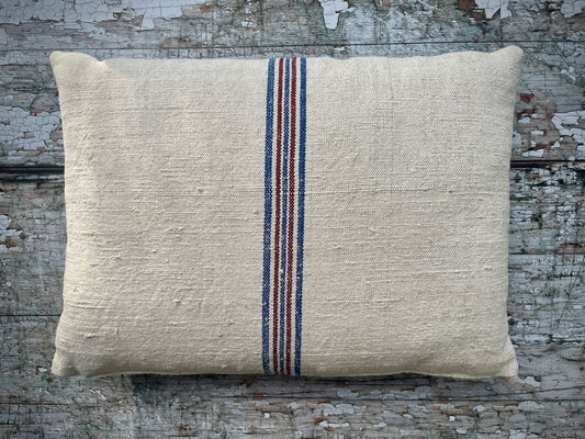 Vintage Hemp Grain Sack Cushion Vertical Stripes