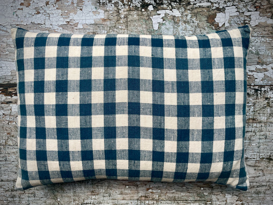 Vintage Linen Cushion Blue + Cream Check