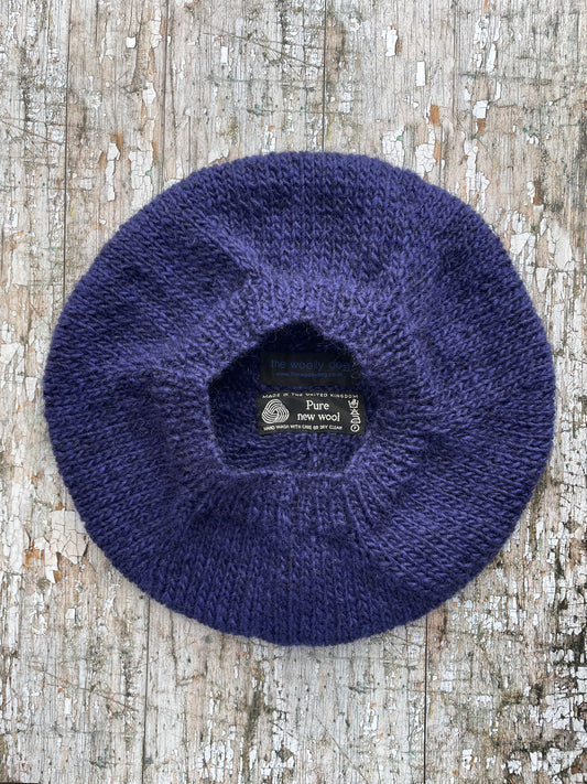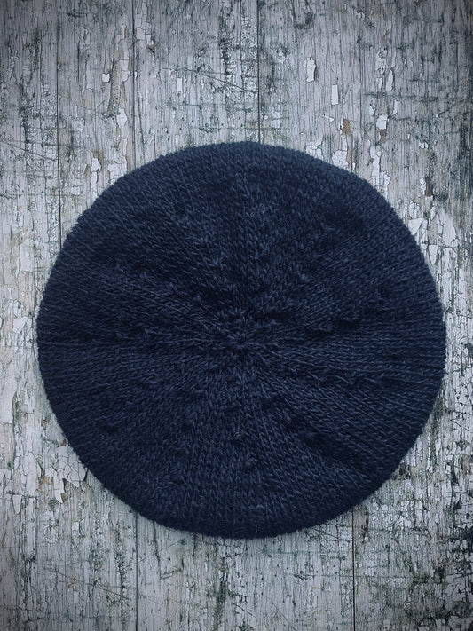 Hand Knitted Wool Beret Dark Navy Blue Large